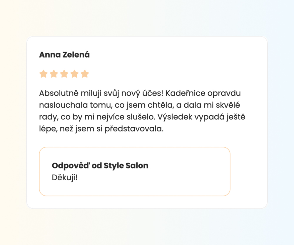 Ušetřete cenný čas, zatímco se váš kalendář plní sám. Už žádné telefonáty nebo neustálé zprávy – díky online rezervaci si klienti rezervují sami kdykoli.