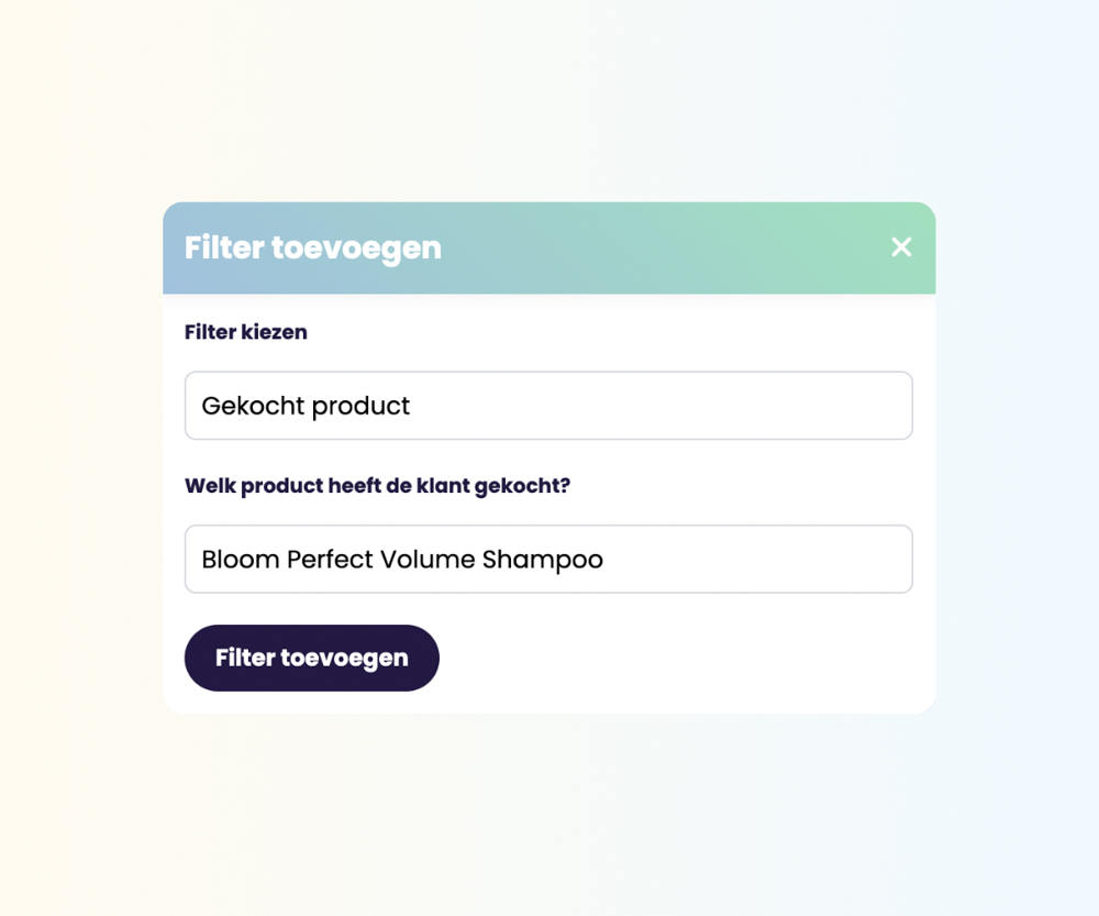 Met Salonround kun je tot 16 criteria gebruiken om een groep klanten te selecteren voor een marketingmail. Zo kun je bijvoorbeeld een e-mail naar klanten sturen die eerder een specifieke dienst hebben geboekt, of klanten selecteren op leeftijd of hoelang ze al klant zijn.