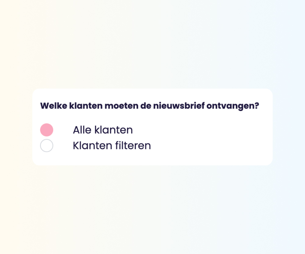 Nieuwsbrieven zijn eenmalige marketingmails die je handmatig verzendt naar alle klanten of een specifieke groep - perfect om nieuws, aanbiedingen of updates te delen. Je kunt ze direct verzenden of ze vooraf inplannen.
