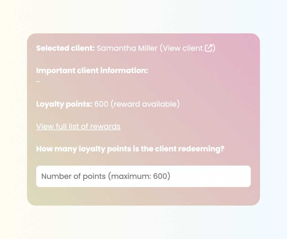 Start your free trial nowEasily create a loyalty program with Salonround and encourage repeat visits. Reward clients with loyalty points for actions you’ve set, such as repeat bookings, and let them redeem their points for rewards.