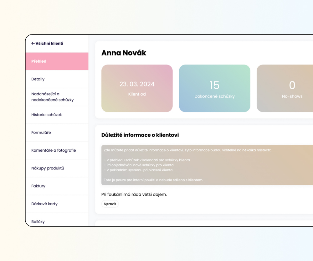 Sdílejte prvky mezi pobočkami, když je to užitečné – jako jsou profily klientů a marketingové nástroje – a ponechte jiné údaje, jako je kalendář, otevírací doba a správa zásob, oddělené.