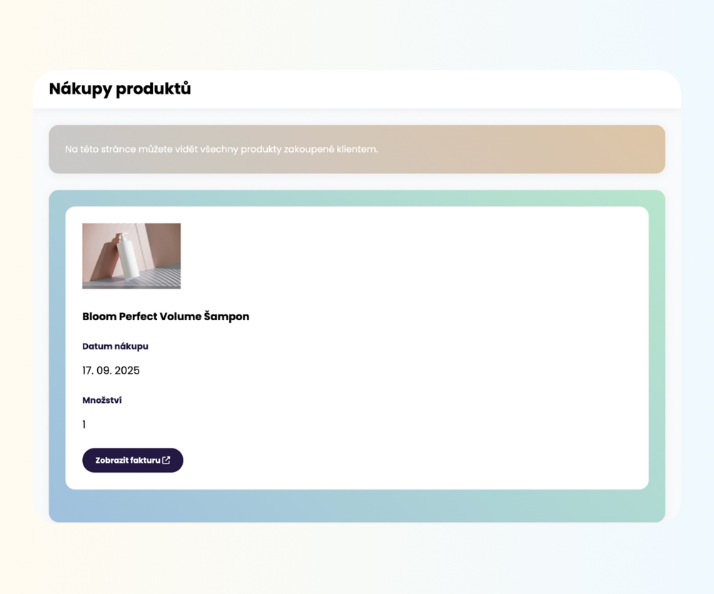 Všechny objednávky z e-shopu najdete na své stránce e-shopu v Salonround. Objednávky jsou navíc propojeny s klientskými profily, takže můžete na první pohled vidět všechny předchozí nákupy – včetně těch z e-shopu.